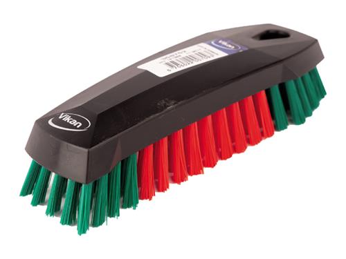 Körömkefe 200x70x60 mm - Fekete polipropilén test, piros/zöld poliészte szálak